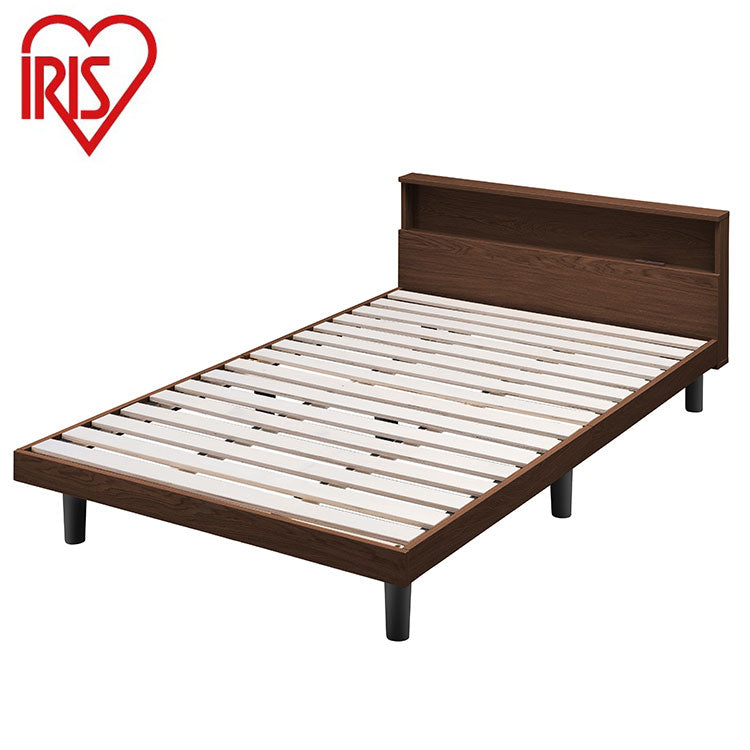 アイリスオーヤマ すのこベッド SD セミダブル ヘッドボード付き 2口コンセント スマホスタンド 棚付き 宮付き 宮棚付き ベッドフレーム すのこベッド 通気性 ブラウン SNB-SD IRIS OYAMA(代引不可)