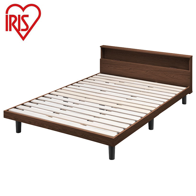 アイリスオーヤマ すのこベッド D ダブル ヘッドボード付き 2口コンセント スマホスタンド 棚付き 宮付き 宮棚付き ベッドフレーム すのこベッド 通気性 ブラウン SNB-D IRIS OYAMA(代引不可)