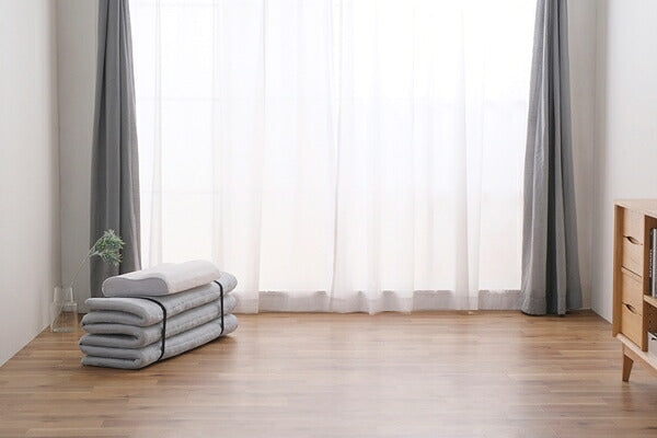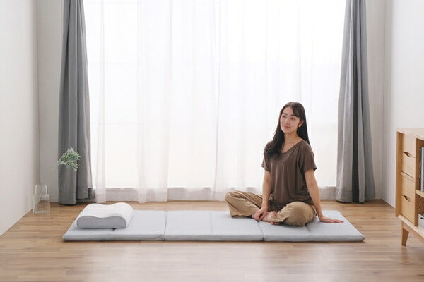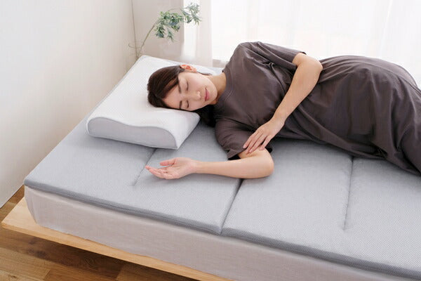 エアロキューブとメッシュ生地により、湿気を逃し快適な寝心地のマットレスです。3次元スプリング構造のエアロキューブが優れた体圧分散性で正しい寝姿勢を保ちます。中央部に配置したかためのエアロキューブが沈みやすい腰部をホールドし、腰への負担を軽減します。適度な反発力で寝がえりをサポートし、快眠へ導きます。軽量で持ち運びもラクに行えます。6つ折りタイプでコンパクトに収納できます。収納しやすいゴムバンドが2本付いています。丸洗いができ清潔を保てます。カバーの取り外しはできません。