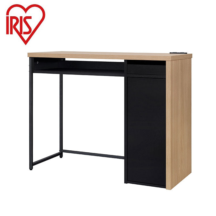 アイリスオーヤマ 収納付きデスク デスク 学習机 収納 パソコンデスク PCデスク 学習デスク 木目調 スチール脚 収納付き コンセント付き simple style ナチュラル/ブラック SDK-890 IRIS OYAMA(代引不可)