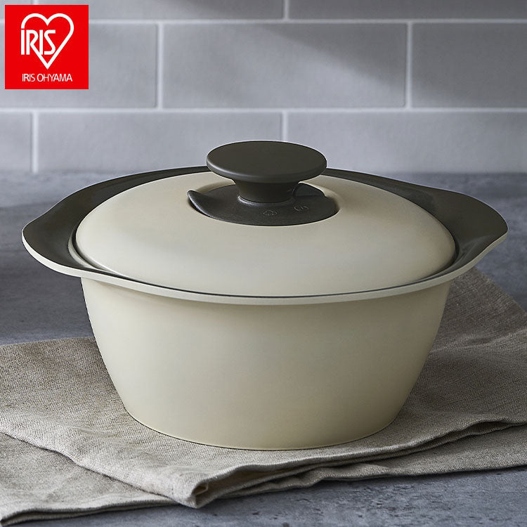 アイリスオーヤマ 無加水鍋 20cm MKS-20 ディープアイボリー セラミック鍋 くすみカラー 可愛い かわいい おしゃれ IRIS OHYAMA(代引不可)