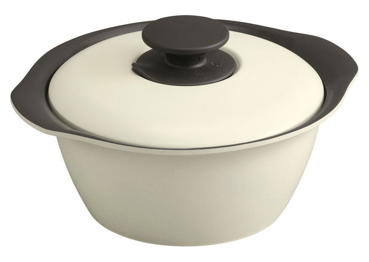余分な水分を使わない調理が可能となります。食材からでるうまみを含んだ蒸気が、ふた裏面にある凸面を伝って食材にまんべんなく降り注ぐウォータードロップ現象により素材本来のおいしさを引き出します。専用のふた取っ手に開閉可能な蒸気口がある為、蒸気を調節できます。栄養を逃しにくく、おいしく作ることができます。熱伝導率がよく、時短調理をすることができます。耐磨耗性試験50万回クリアしたセラミックコーティング加工により、こびりつきにくく、汚れもスルっと落ちます。丸みのある形状とくすみカラーでかわいらしいデザインです。ガス火・IHに対応しています。