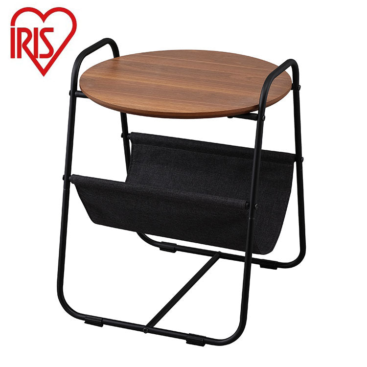 アイリスオーヤマ 丸型 収納付き サイドテーブル ミニテーブル ソファテーブル カフェテーブル 円形天板 スチールフレームサイドテーブル ウォールナット SFST-400F IRIS OYAMA(代引不可)