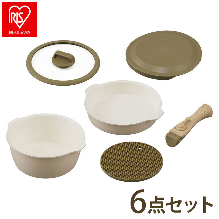 アイリスオーヤマ お皿になるフライパン6点セット DPAN-6S アイボリー 取っ手が取れる フライパンセット 鍋 着脱ハンドル セラミック 可愛い かわいい おしゃれ IRIS OHYAMA(代引不可)