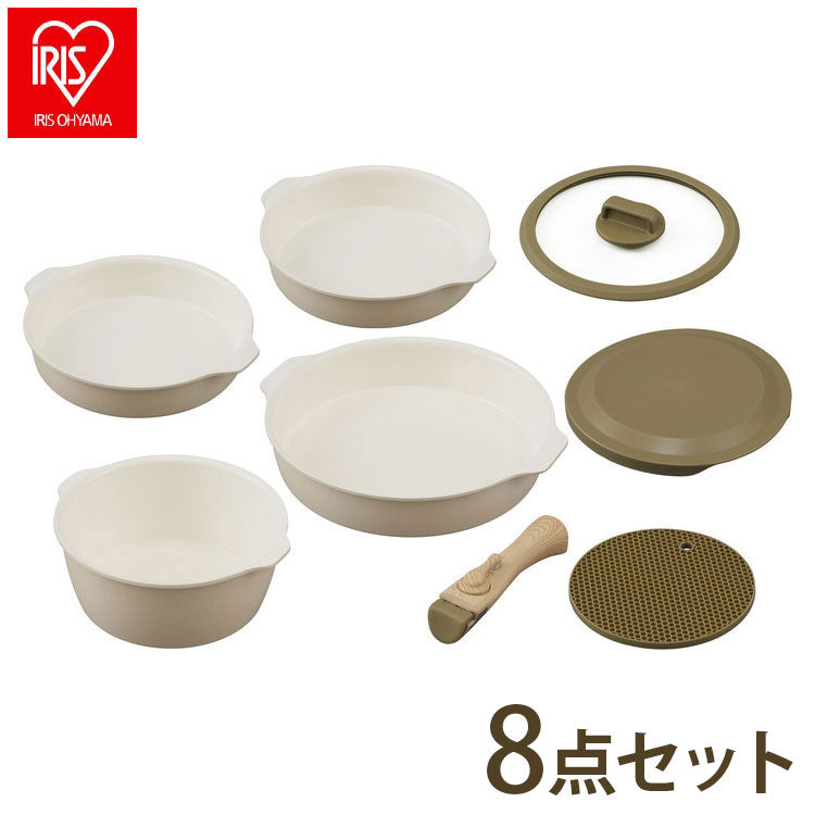 アイリスオーヤマ お皿になるフライパン8点セット DPAN-8S アイボリー 取っ手が取れる フライパンセット 鍋 着脱ハンドル セラミック 可愛い かわいい おしゃれ IRIS OHYAMA(代引不可)