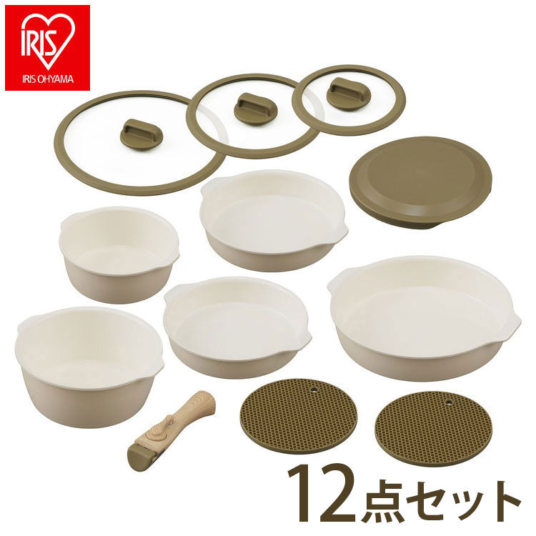 アイリスオーヤマ お皿になるフライパン12点セット DPAN-12S アイボリー 取っ手が取れる フライパンセット 鍋 着脱ハンドル セラミック 可愛い かわいい おしゃれ IRIS OHYAMA(代引不可)