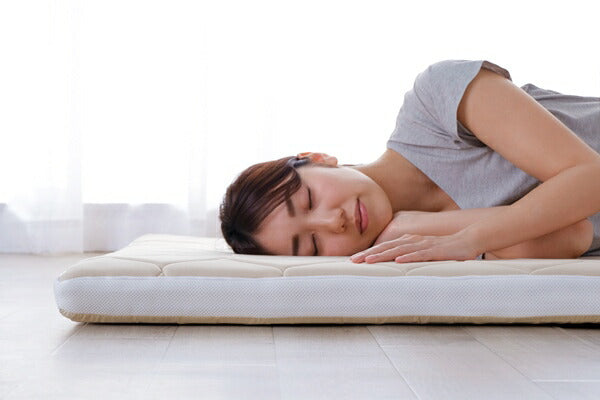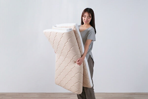低反発ウレタンフォーム入りの3層構造の敷き布団です。3種類のウレタンフォームで快適な寝心地です。厚さが約8cmあり、底付き感なくお使いいただけます。1層目の低反発ウレタンは、身体をやさしく包み込むような心地よいやわらかさです。2層目のフラットウレタンは竹炭パウダー入りです。竹炭パウダーの力で汗の嫌な臭いを軽減します。3層目はプロファイル加工のウレタンです。凹凸のある構造で通気性が良く、体圧分散性に優れ、快適な睡眠をサポートします。側生地は抗菌防臭加工を施し、清潔を保てます。圧縮梱包されています。取り出した後、数日で復元します。