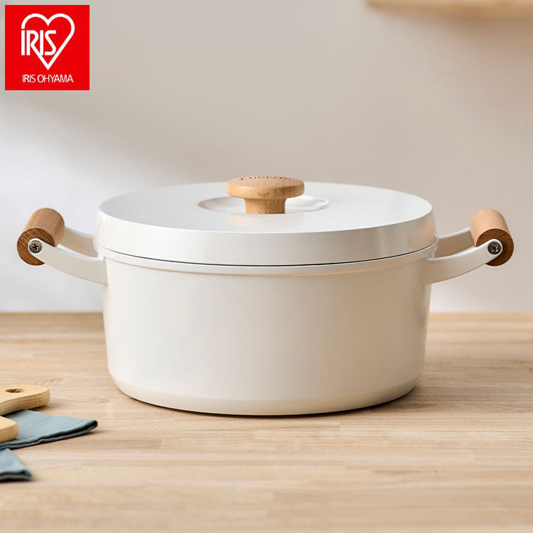 アイリスオーヤマ ルオント LUONTO 24cm 両手無加水鍋 LUO-P24 ホワイト 両手鍋 セラミック IRIS OHYAMA(代引不可)