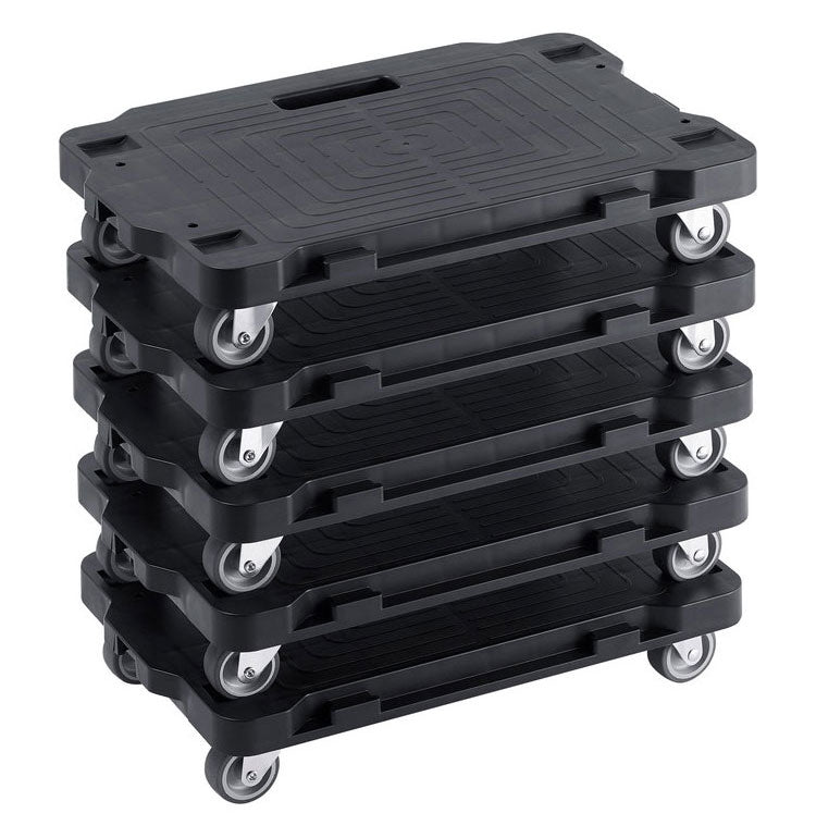 コンパクトで連結すれば使い方も広がる連結ミニ平台車5台セットです。ワンタッチで簡単に、縦にも横にも連結が可能です。積み重ねが出来るので、収納にも場所を取りません。キャスター用の溝があるので積み重ねてもズレにくいです。持ち手穴があるので持ち運びが簡単です。シンプルなカラーでどこに置いても馴染むデザインです。