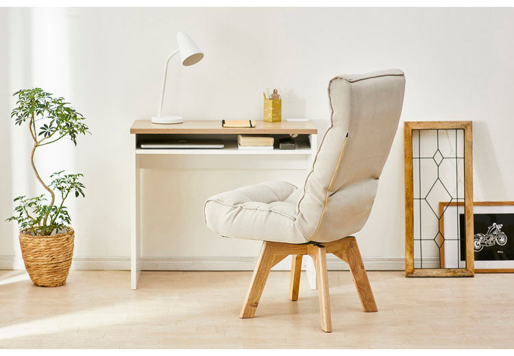 快適性とインテリア性を併せ持った回転ファブリックチェアです。座面が360度回転するので、物を取る時も便利です。座面が高いので座りやすく、立ち上がりも楽にできます。身体にフィットする座り心地で長時間座っていても快適です。使用しない時は、背面をたたむことができます。お客様組み立てとなります。