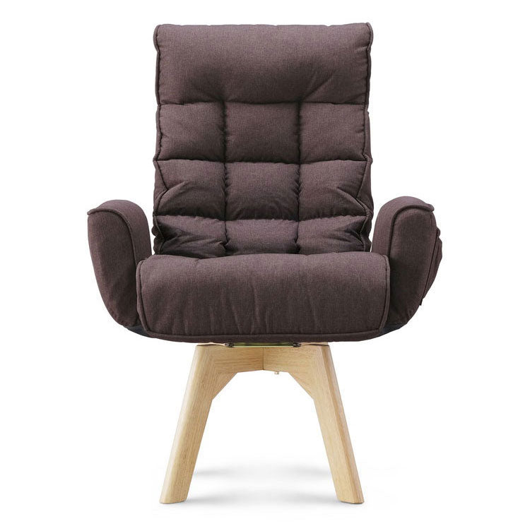 快適性とインテリア性を併せ持った回転ファブリックチェアです。座面が360度回転するので、物を取る時も便利です。座面が高いので座りやすく、立ち上がりも楽にできます。身体にフィットする座り心地で長時間座っていても快適です。使用しない時は、背面をたたむことができます。厚みのある肘掛けは、立ち座りの際に便利です。小物収納に便利なポケット付きです。お客様組み立てとなります。