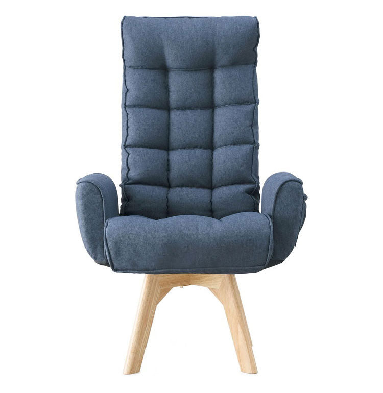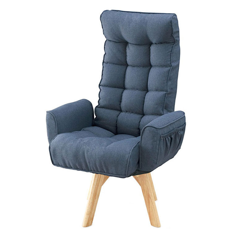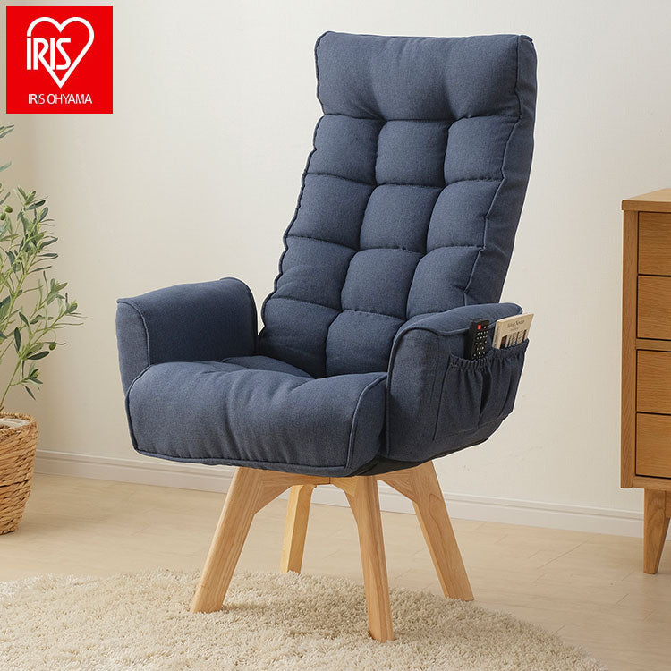 快適性とインテリア性を併せ持った回転ファブリックチェアです。背の高い男性でも首までゆったりもたれられるハイタイプです。座面が360度回転するので、立ち上がり時や物を取る時も便利です。座面が高いので座りやすく、立ち上がりも楽にできます。身体にフィットする座り心地で長時間座っていても快適です。使用しない時は、背面をたたむことができます。厚みのある肘掛けは、立ち座りの際に便利です。小物収納に便利なポケット付きです。お客様組み立てとなります。