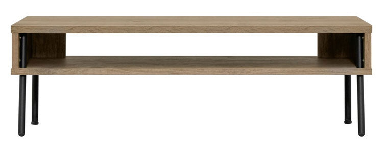 約40型までの薄型テレビに対応できるAVボードです。薄型テレビに合わせた省奥行き設計で空間を広く確保します。AV機器も収納できます。背板のないオープンタイプで、熱がこもりにくくコード類もまとめやすいです。曲げ脚から直線パイプに変わったことで、組み立てが簡単になりました。お客様組み立てとなります。