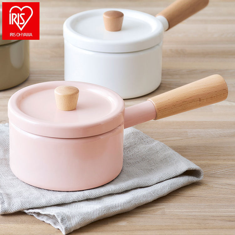 アイリスオーヤマ ミルクパン 14cm MLKP-14 ライトピンク 鍋 小鍋 セラミック鍋 天然木ハンドル くすみカラー 可愛い かわいい おしゃれ IRIS OHYAMA(代引不可)