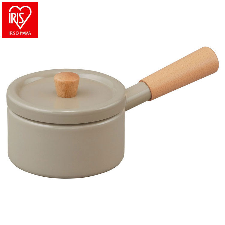 アイリスオーヤマ ミルクパン 14cm MLKP-14 ウォームグレー 鍋 小鍋 セラミック鍋 天然木ハンドル くすみカラー 可愛い かわいい おしゃれ IRIS OHYAMA(代引不可)
