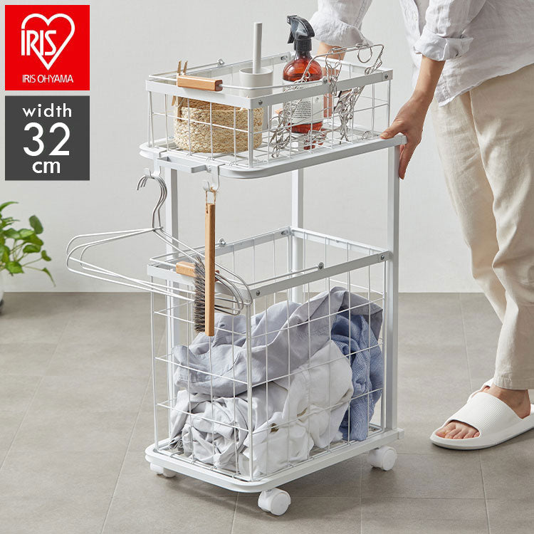 アイリスオーヤマ ランドリーバスケットワゴン2段 LBW-452 ホワイト ランドリーラック 2段 ランドリーワゴン 洗濯かご ランドリーバスケット IRIS OHYAMA(代引不可)