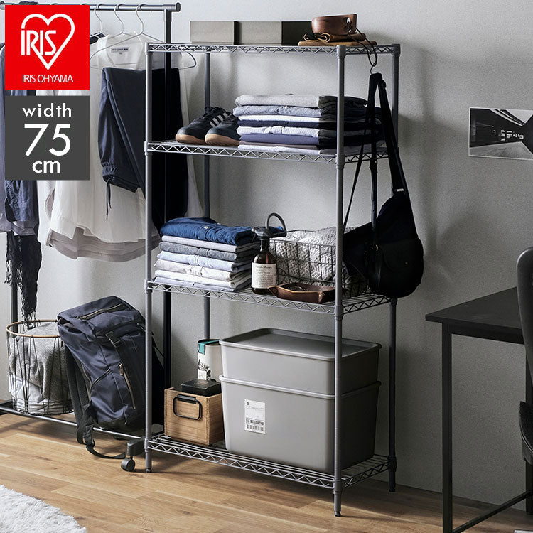 アイリスオーヤマ カラーメタルラック 幅75cm 4段 高さ143cm CMM-75144 ダークグレー スチールラック メタルラック カラー 棚 オープンラック キッチンラック シンプル IRIS OHYAMA(代引不可)