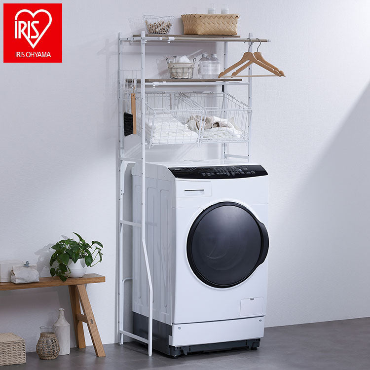 アイリスオーヤマ バスケット付き伸縮スタイルランドリーラック BSSL-860R ホワイト 洗濯かご ランドリーバスケット 洗濯機ラック 伸縮式 ラック 棚 IRIS OHYAMA(代引不可)