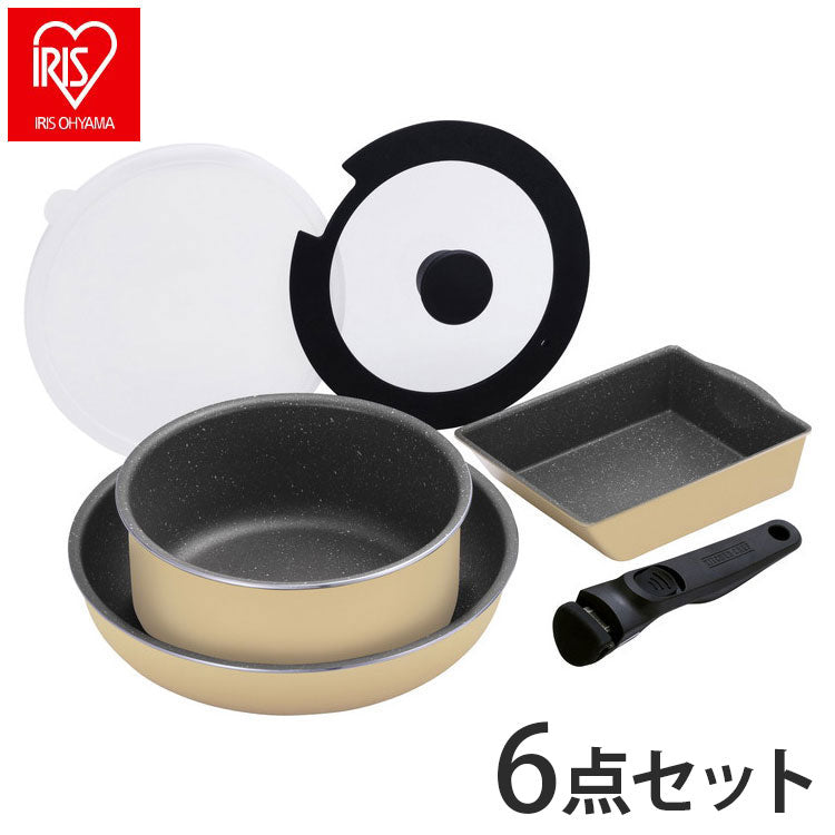 アイリスオーヤマ ダイヤモンドコートパン ガス6点セット DCG-T6S クレイベージュ フライパンセット フライパン 鍋 6点セット ガス火 IRIS OHYAMA(代引不可)