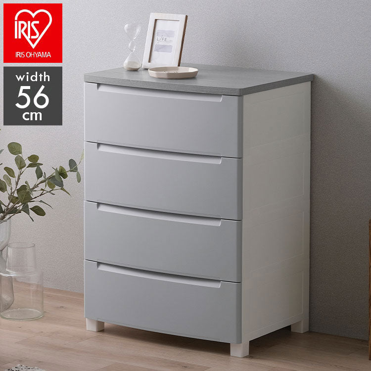 アイリスオーヤマ ウッドトップノックダウンチェスト 幅56cm 4段 KDMG-564WT ライトグレー 木目調 天板 収納ケース リビングチェスト クローゼット ウッドトップチェスト IRIS OHYAMA(代引不可)