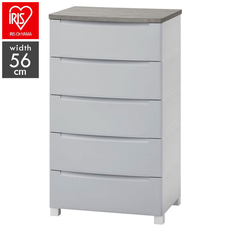 アイリスオーヤマ ウッドトップノックダウンチェスト 幅56cm 5段 KDMG-565WT ライトグレー 木目調 天板 収納ケース リビングチェスト クローゼット ウッドトップチェスト IRIS OHYAMA(代引不可)