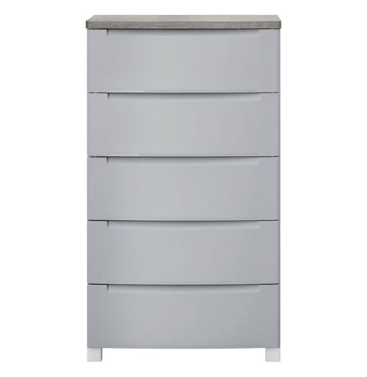 落ち着いたカラーとシンプルなデザイン、質感にこだわった使いやすいチェストです。工具不要で簡単に組み立てができます。前パネル・側面・背面は、ツヤ消しのシボ加工を施すことで落ち着きのあるマットな質感です。天然木を思わせる木目調でインテリアのアクセントにもなります。側面・背面はパネルがあるフルカバー設計で、ほこりが入りにくく大切な衣類を守ります。約4.3cmの脚付きでお掃除がしやすくなっています。