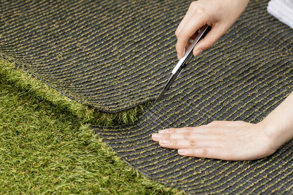 天然芝のような弾力と質感の国産人工芝です。敷くだけで雑草が生えにくい防草人工芝です。防草・防カビ機能付きです。特殊加工の防草シートを使用し、微細な穴が無数に開いているため水はけが抜群です。