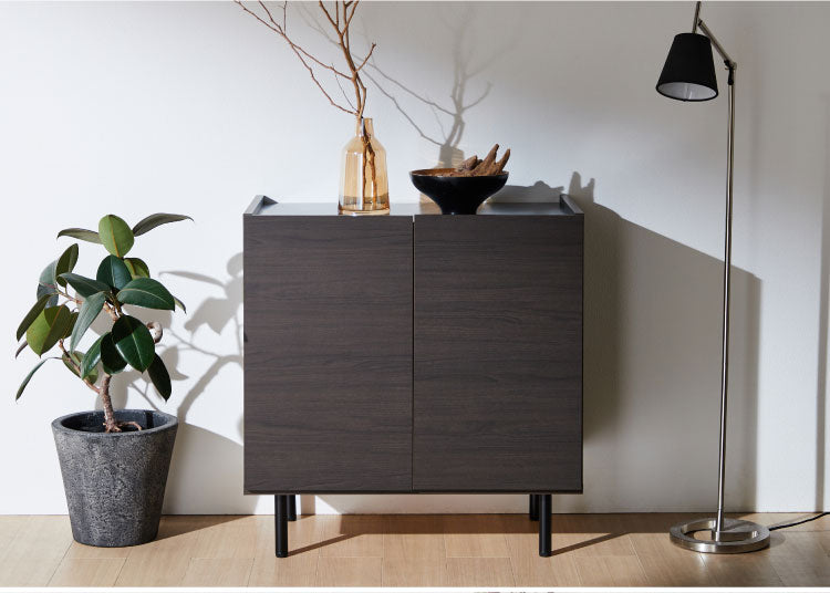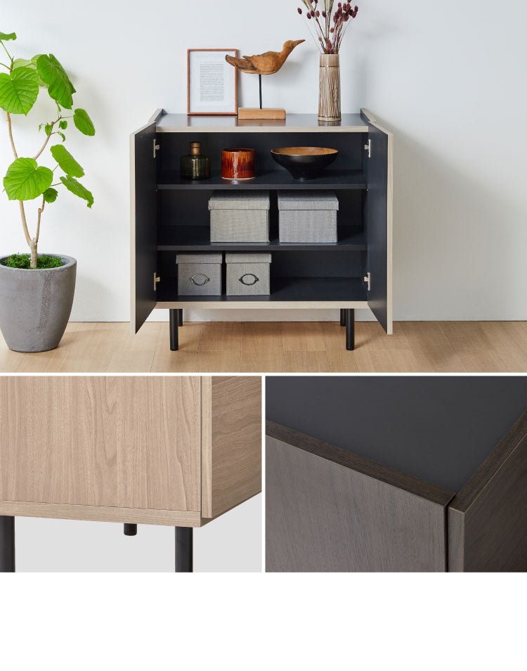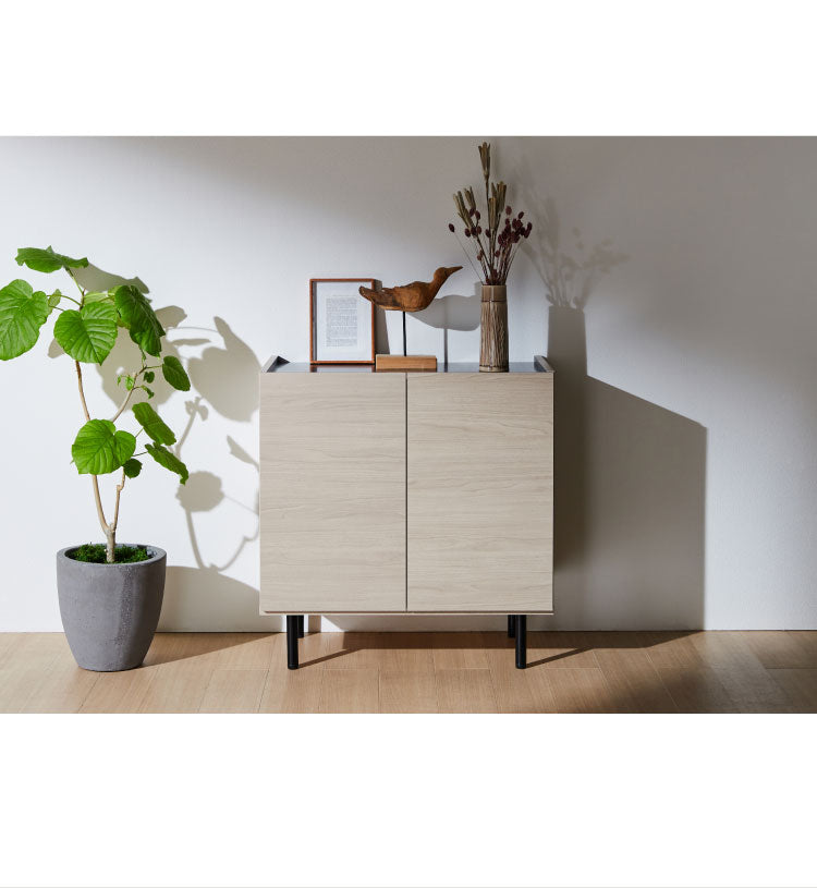 北欧風 キャビネット 幅85 オーク 日本製 完成品 木製 おしゃれ カウンター 間仕切り 国産 ナチュラル 木目 オレフィン 脚付き 収納 チェスト リビング 収納 スチール脚(代引不可)