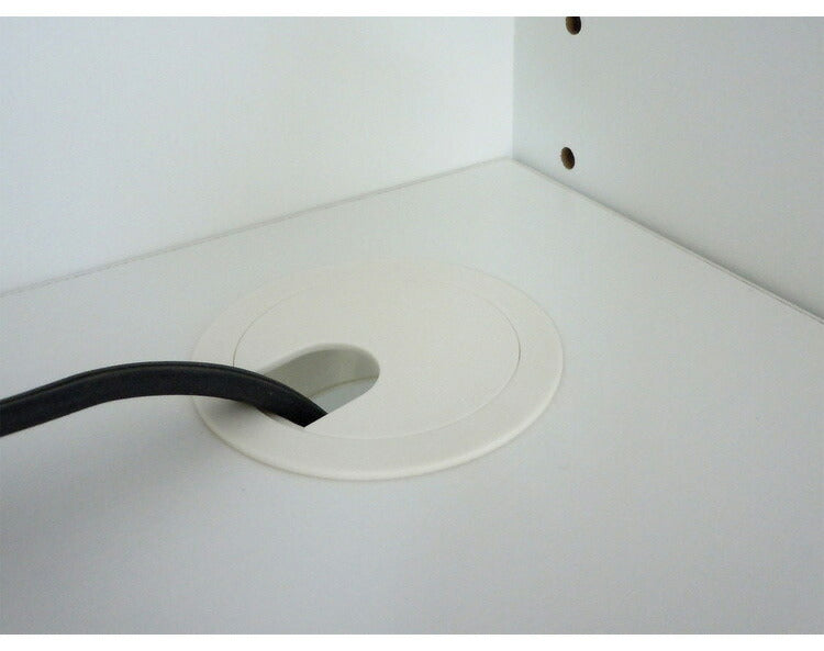 棚板にコード穴付き。 オープン部内のコンセントに スムーズに配線を行えます。