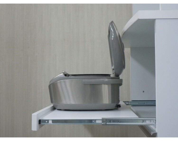 スライド棚は手前に大きく引き 出せるオーバートラベルレールを 使用。炊飯ジャーなどフタのある 家電製品も使いやすくなります。