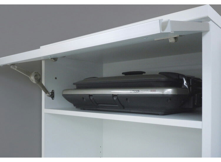 上扉はフラップ式。扉内には ホットプレートやお盆などの 幅の広い物もスッキリ収納で きます。