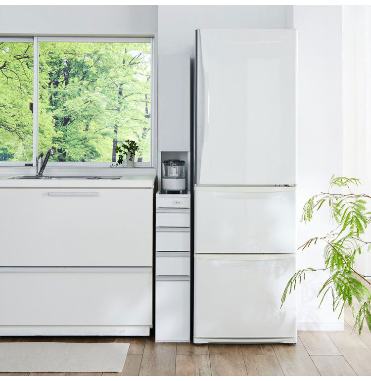 ステンレス キッチン収納棚 コンセント付き スリム 隙間収納 20cm 幅20cm 日本製 すき間収納 鏡面 ホワイト ルミナーレ 可動棚 引き出し おしゃれ シンプル モダン 一人暮らし キッチン収納(代引不可)