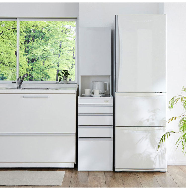 ステンレス キッチン収納棚 スリム 隙間収納 40cm 幅40cm 日本製 すき間収納 鏡面 ホワイト ルミナーレ 可動棚 引き出し おしゃれ シンプル モダン 一人暮らし キッチン収納 収納棚 スリム収納(代引不可)