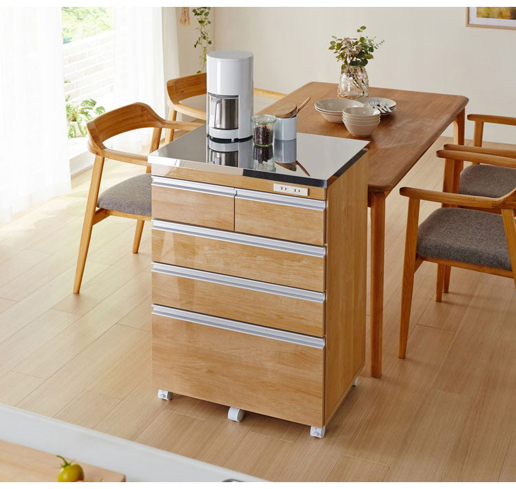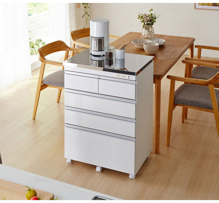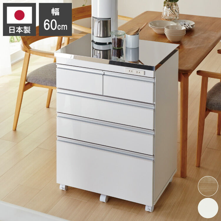 キッチンカウンター 間仕切り ステンレス天板 幅60 完成品 国産 背面化粧仕上げ 鏡面仕上げ 【開梱設置無料】 キャスター付き 4段 レンジ台 レンジラック 食器棚 キッチンワゴン(代引不可)
