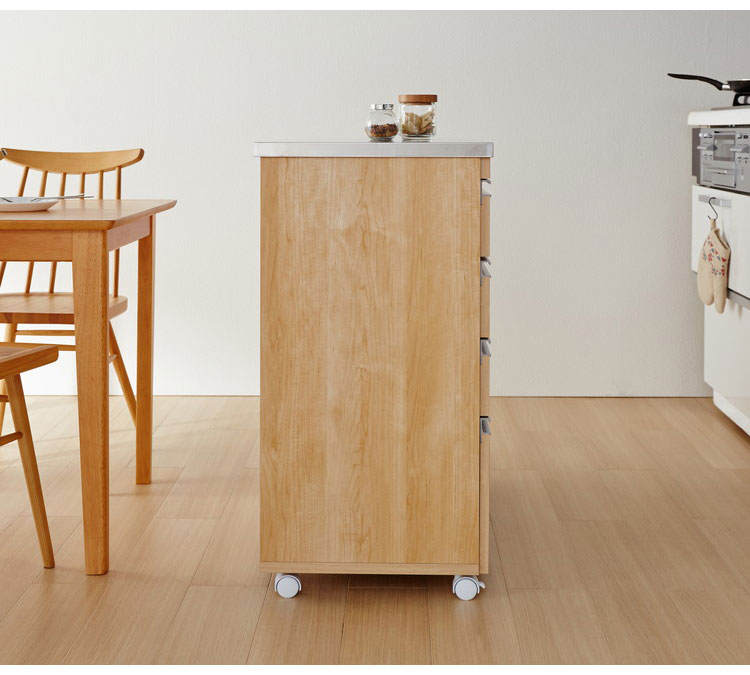 ・ストッパー付キャスターで女性でも簡単に移動できます。お掃除のときやテーブル横に持ってきてワゴンとして使うのも便利です。