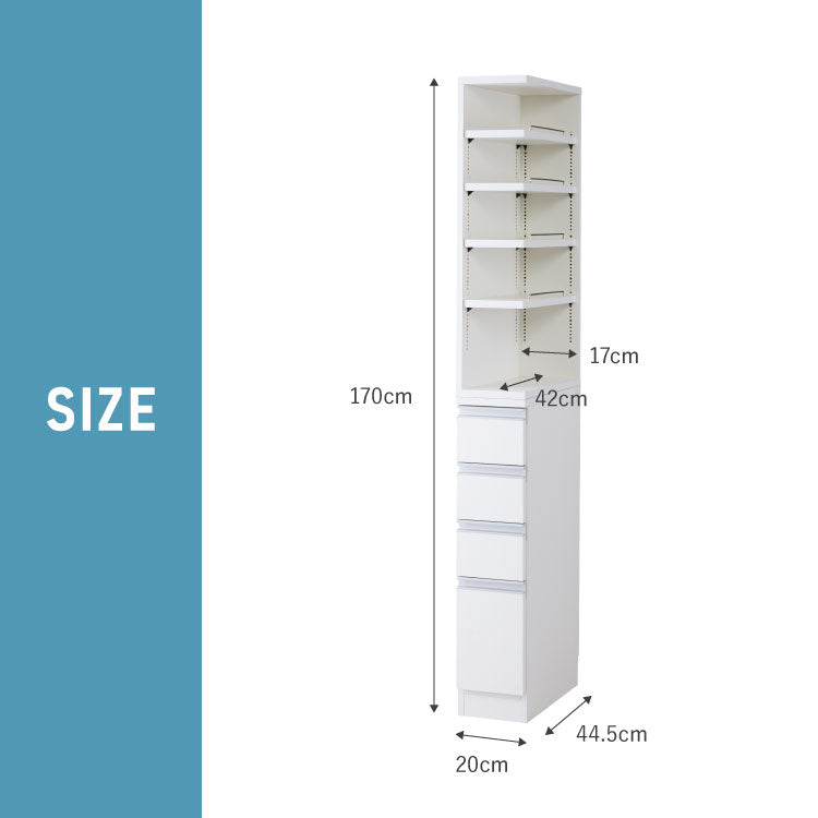 20cm 2面オープン1cmピッチすきま収納 日本製 半完成品 届いてすぐ使える 170cm 国産 隙間収納 ラック 本棚 スリム 薄型 縦長 オーダー 棚 隙間収納棚 漫画 収納 国産 洗面所 隙間収納ラック 隙間(代引不可)