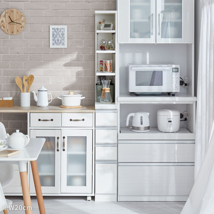 小物の収納に便利な小引出しと、調味料等のストックに便利な大引出しで、使い勝手の良い収納が可能。