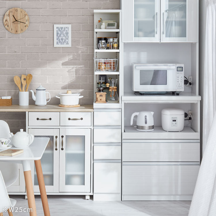 小物の収納に便利な小引出しと、調味料等のストックに便利な大引出しで、使い勝手の良い収納が可能。