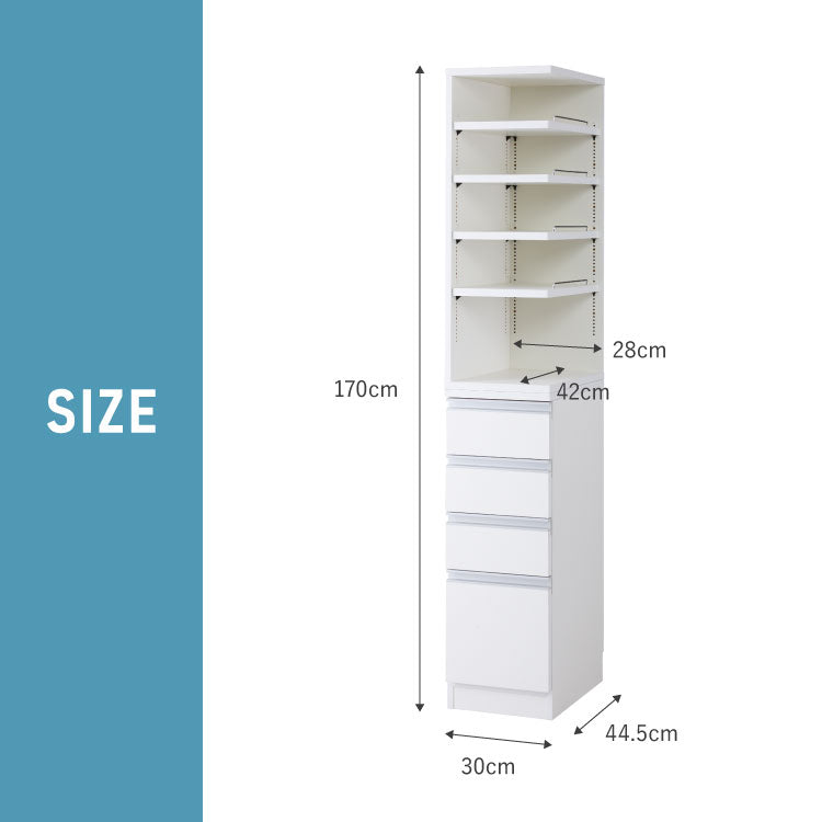 30cm 2面オープン1cmピッチすきま収納 日本製 半完成品 届いてすぐ使える 170cm 国産 隙間収納 ラック 本棚 スリム 薄型 縦長 オーダー 棚 隙間収納棚 漫画 収納 国産 洗面所 隙間収納ラック 隙間(代引不可)