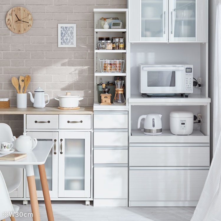 小物の収納に便利な小引出しと、調味料等のストックに便利な大引出しで、使い勝手の良い収納が可能。