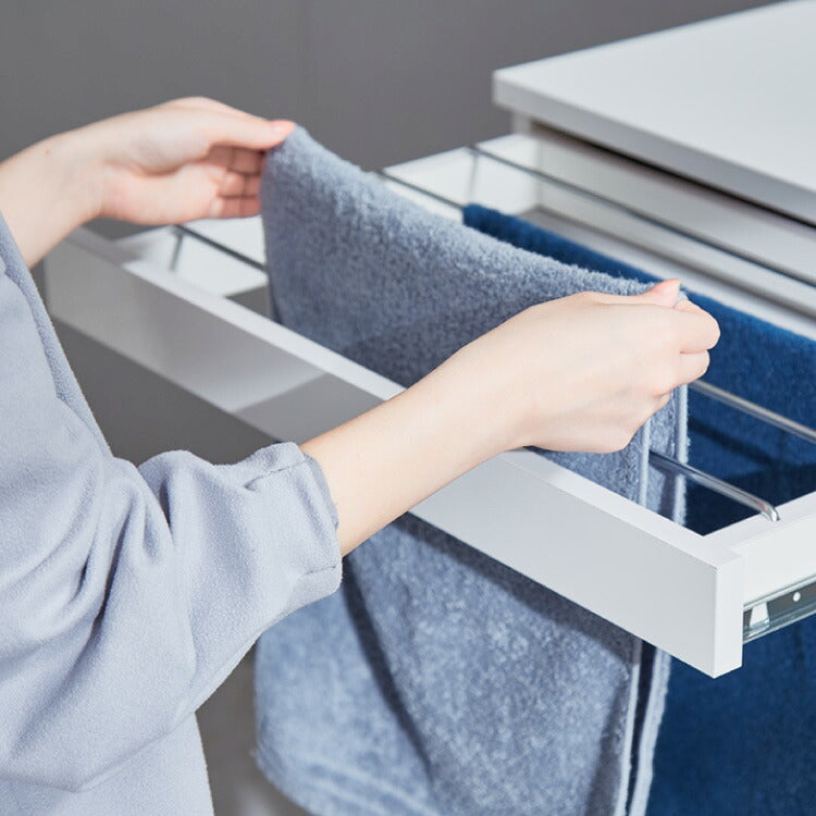 〇使用する時に引き出せるタオルバー付、下着の部屋干しにも便利