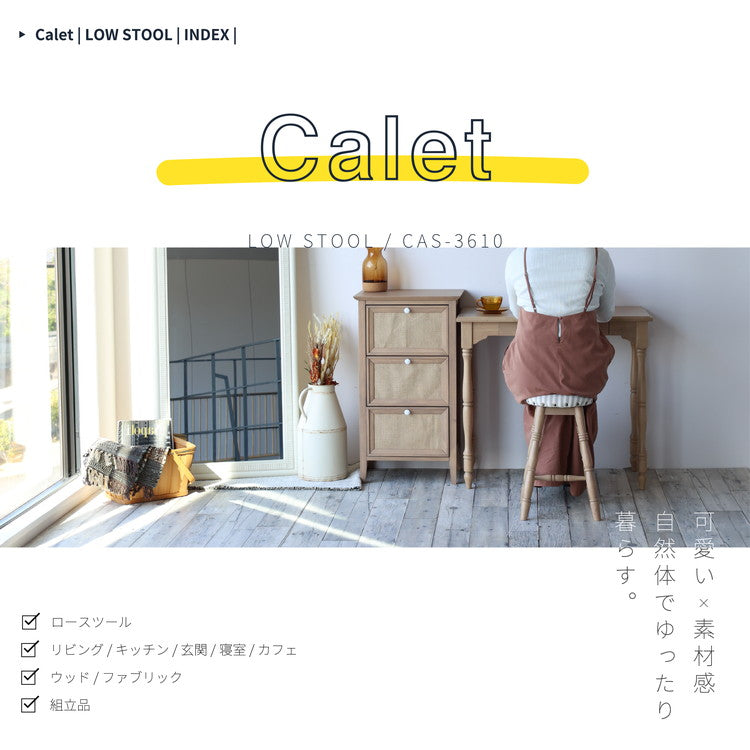 天然素材とトレンドのカラーを組み合わせた大人可愛いCaletシリーズ。人気のロースツールはキャンバス生地とアンティーク風のスタッズがお洒落ポイント。