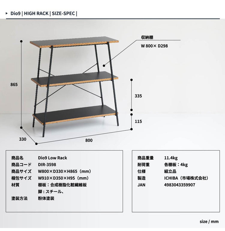 耐荷重:各棚板4kg