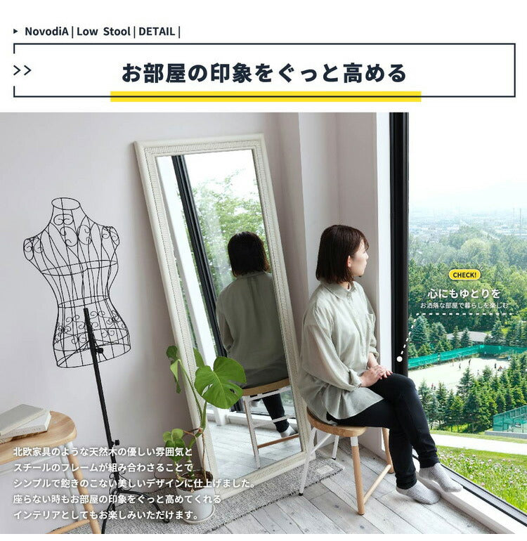 ロースツール 幅42cm 天然木 スチール ダイニングスツール コンパクト おしゃれ 北欧 ロータイプ 木製 飾り台 ダイニングチェア 椅子 いす イス(代引不可)
