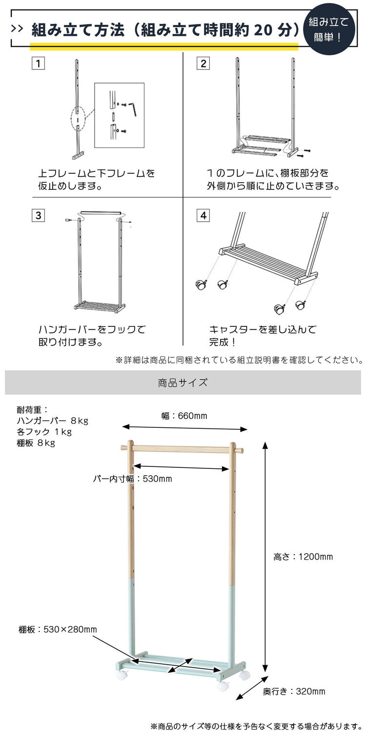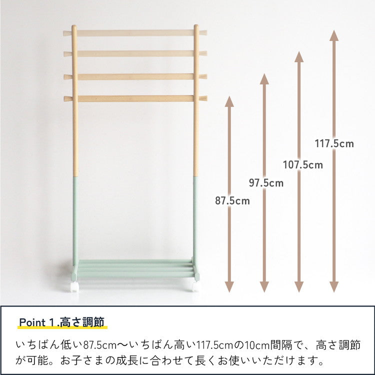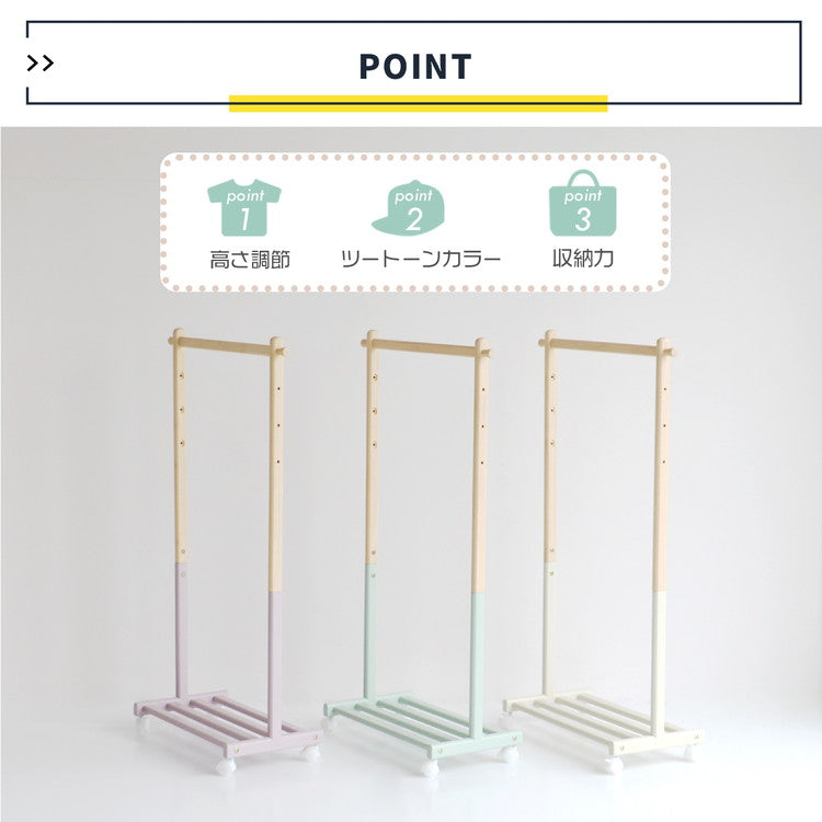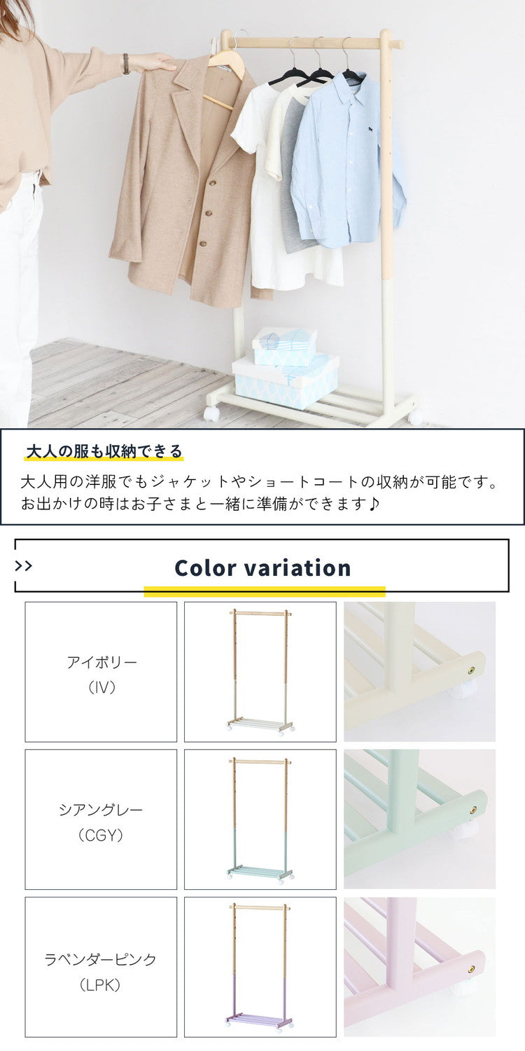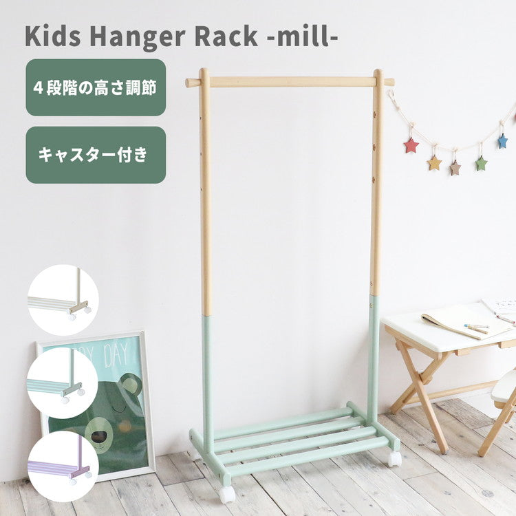 キッズハンガーラック キャスター付き 棚付き 洋服掛け ツートンカラー おしゃれ かわいい コートハンガー 子供部屋 片づけ 収納 mill ILH-3685(代引不可)