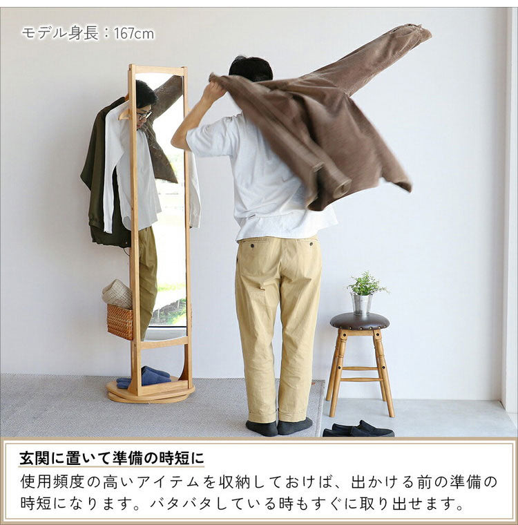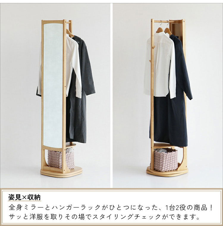 姿見×収納。360度回る、回転式ミラーハンガー。
