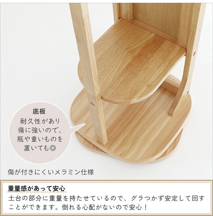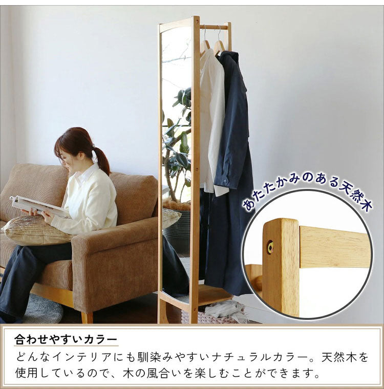回転ミラーハンガー 幅40cm 回転ミラー ハンガーラック スタンドミラー ハンガー 鏡 全身 ミラー 回転ハンガー スタンドミラー 木製 姿見 コンパクト 収納付き(代引不可)