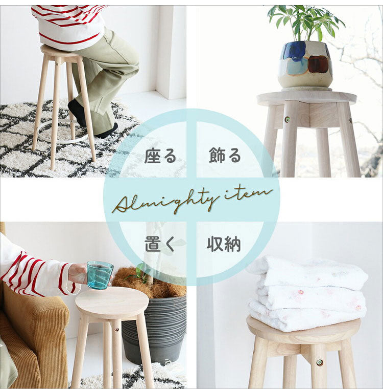 スツール 高さ60cm 椅子 木製 ハイスツール スチール 金属 丸 ラウンド コンパクト 無垢材 花台 観葉植物 サイドテーブル イス いす 北欧 おしゃれ ナチュラル(代引不可)