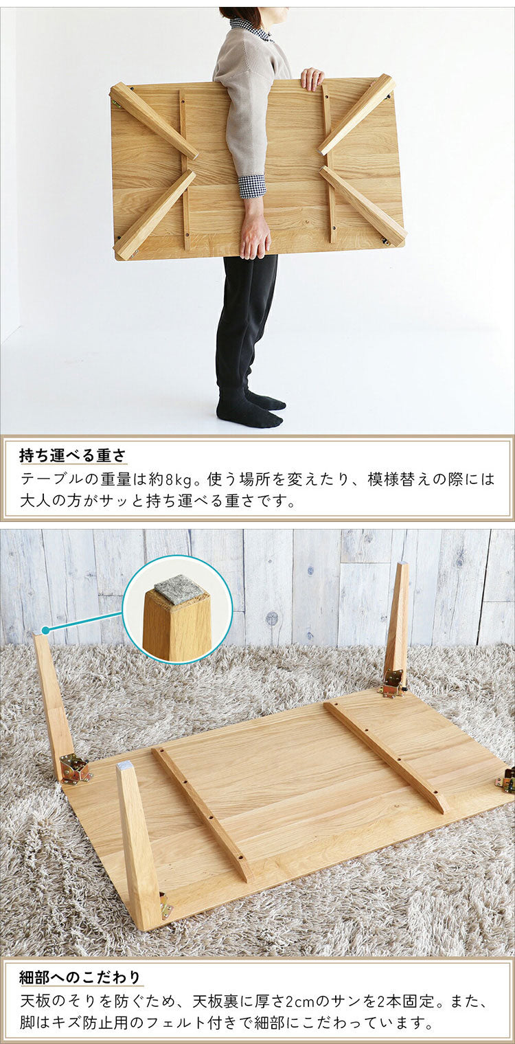 テーブル 幅90cm 折りたたみテーブル ローテーブル リビングテーブル センターテーブル 座卓 オーク ナチュラル ブラウン 折り畳み 収納 無垢材 北欧 おしゃれ(代引不可)