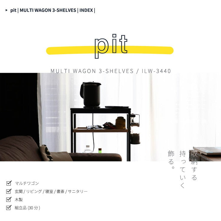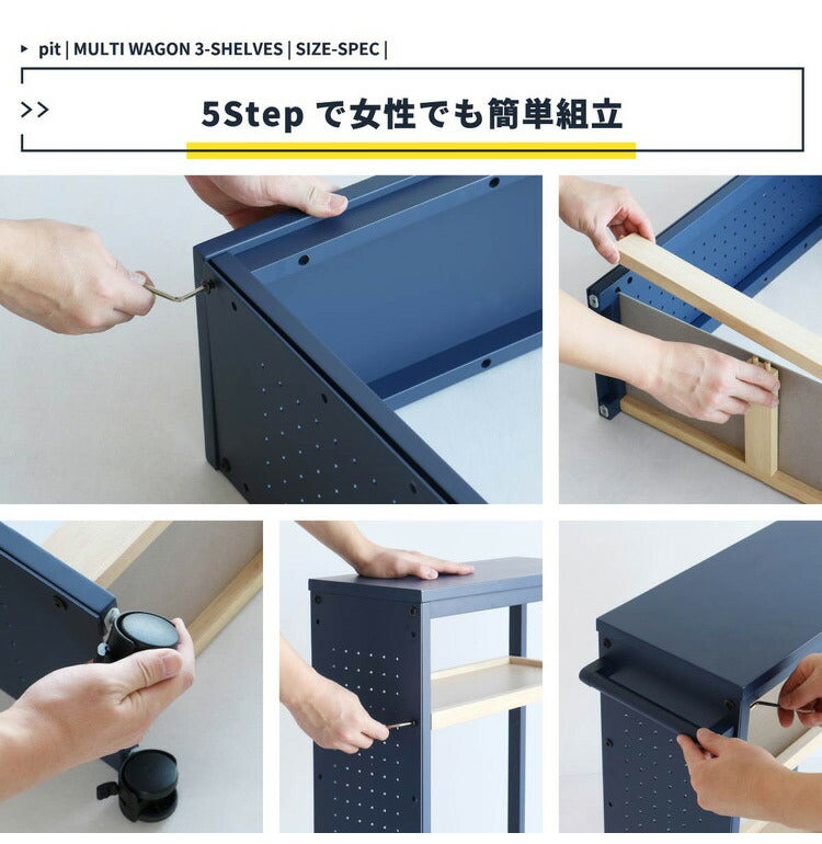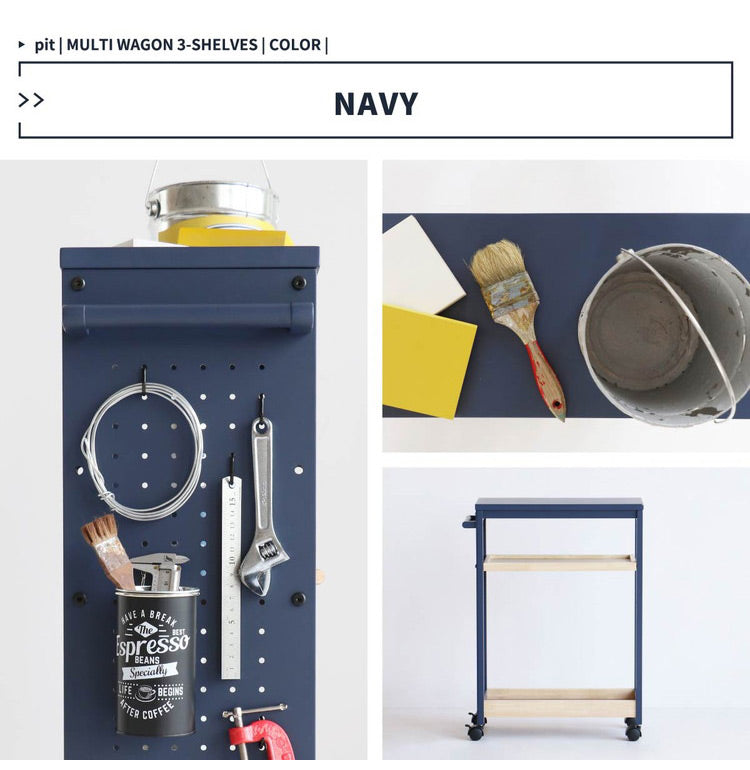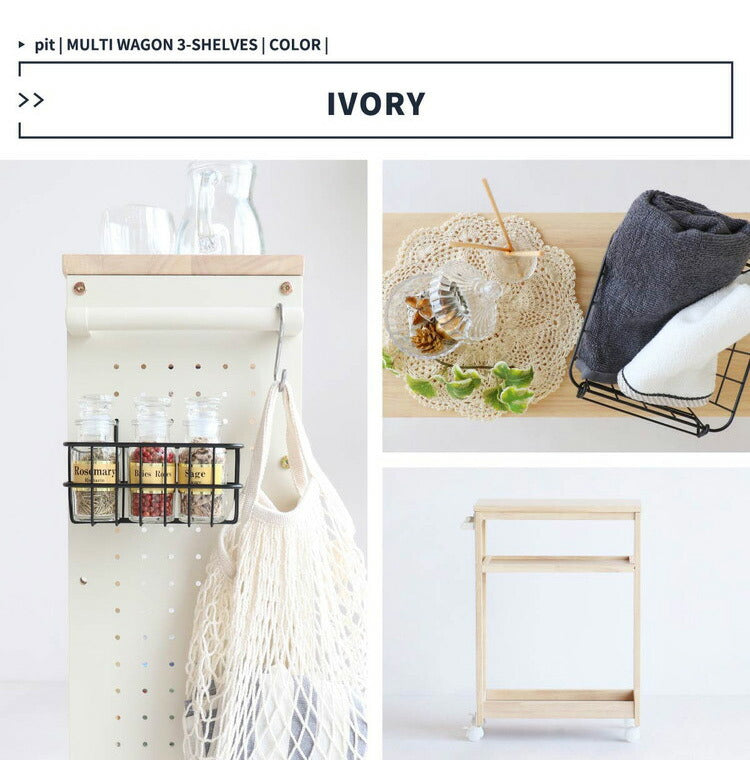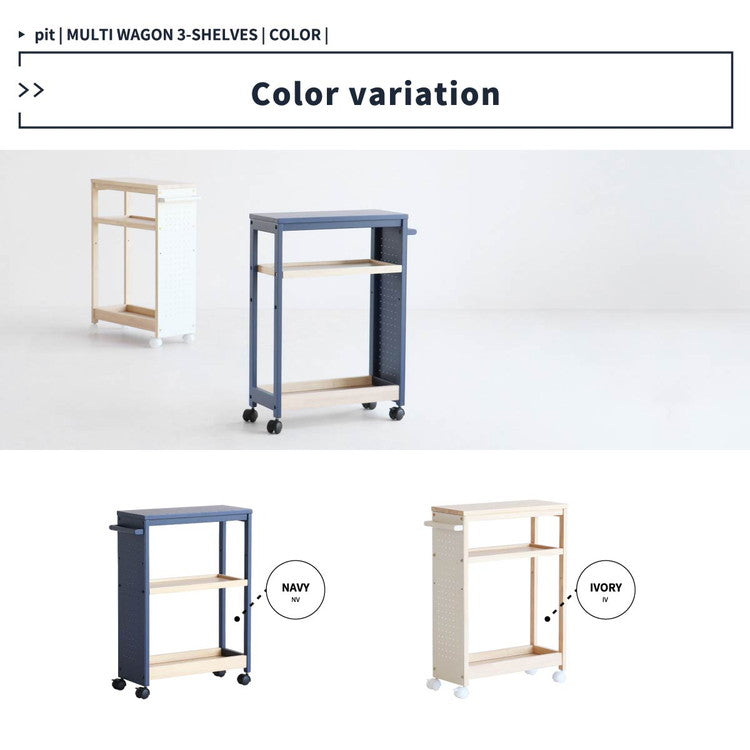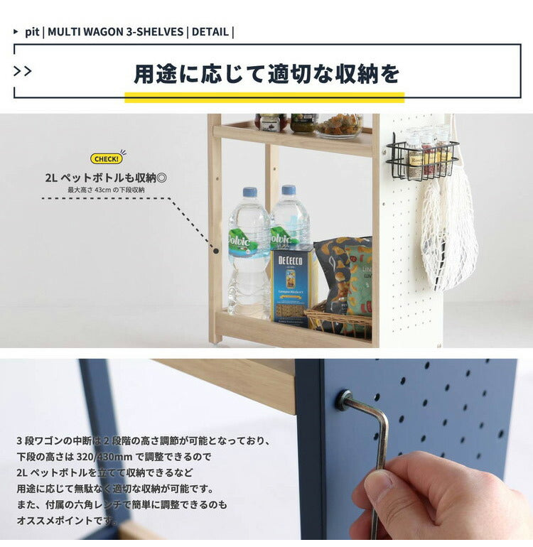 収納をカスタマイズできる有孔ボード付きマルチワゴン「pit」。キッチンやランドリー、DIYのような作業等、マルチに活躍する収納ワゴンです。有孔ボードは一般的な25mm間隔Φ5mmなので、市販のS字フックにも対応しています。